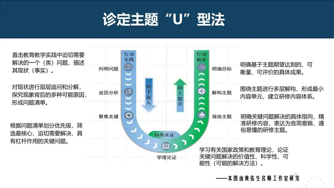 培训的核心实战,并非热闹的小组协作,而是一场面向自我的“寂静突围”。贺娟老师将“诊定主题”的思维流程绘制成“U型图”,成为我探索路上最可靠的导航。面对屏幕,我开启了一段孤独却深刻的思维之旅: